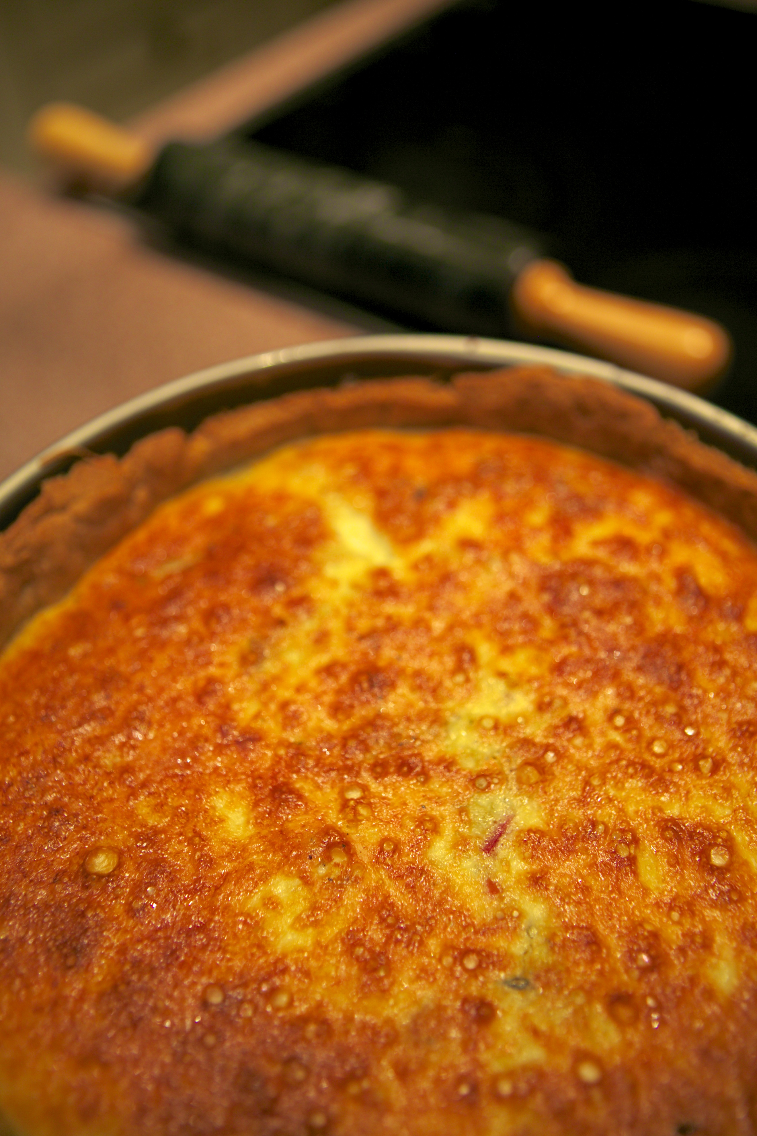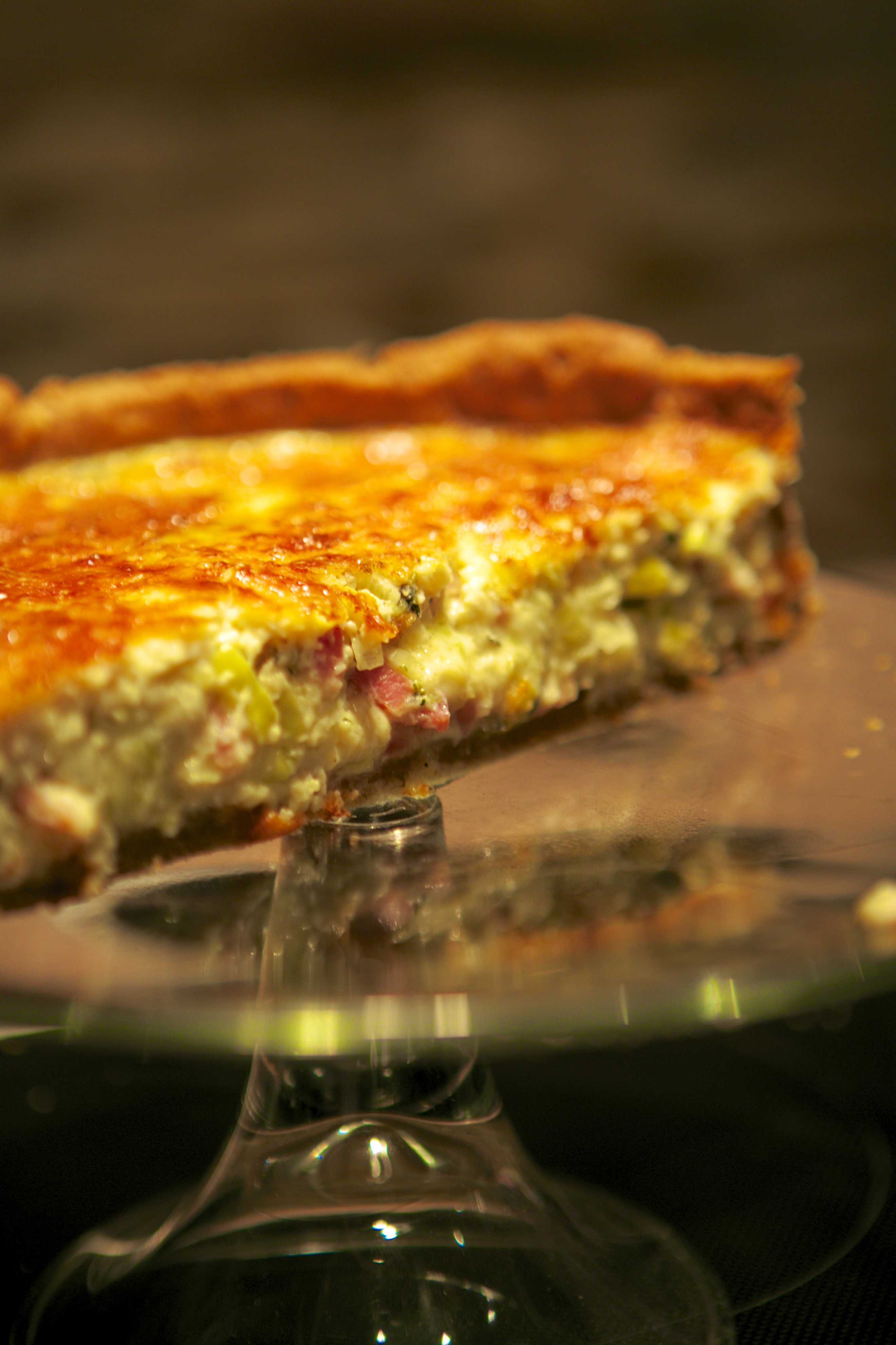 Quiche Lorraine Recipe Top with onion and cheese.. This quiche lorraine has no cheese in the listed ingredients, but you may add up to 8 ounces. This is best served warm, so allow enough time to cool (approximately 1 hour).